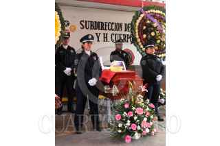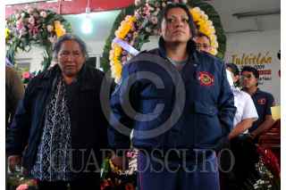 TULTITLAN, ESTADO DE MEXICO, 16FEBRERO2009.- Ángela de Jesús Mendoza de 24 años de edad, fue velada en las instalaciones que se encuentran a un lado del palacio municipal de Tultitlan. Ángela quien se desarrollaba como bombero de la zona, murió en el incendio que se registro en el Waldo's Mart de Cuautilán Izcalli, en el lugar compañeros de todas las corporaciones, asi como Familiares y amigos, acudieron para hacer guardias al pie de su féretro. FOTO: JULIETA MORA/CUARTOSCURO.COM