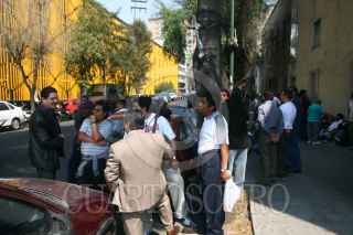 MÉXICO, D.F., 17FEBRERO2008.- Empleados de Diario Monitor esperan a las afueras de las instalaciones del periódico para recibir su liquidación. Dicho rotativo fue cerrado el dia de ayer, después de que la PGR tomara posesión del edificio. FOTO: SAUL LOPEZ/CUARTOSCURO.COM