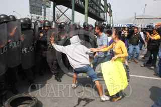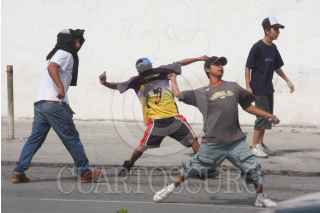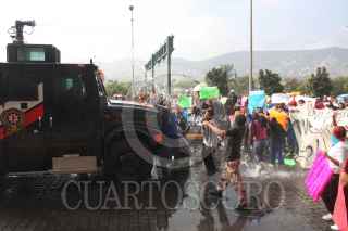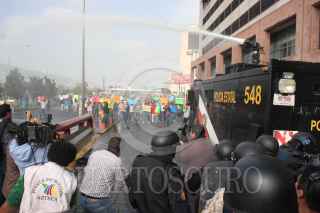 MONTERREY, NUEVO LEÓN, 17FEBRERO2009.- Por sexta ocasión en poco más de una semana y por alrededor de tres horas, los "Tapa calles" bloquearon importantes avenidas de la ciudad, ocasionando disturbios en la vía pública y provocando caos vial. Elementos de la policía estatal, y de la policía federal preventiva realizaron operativos para desbloquear las calles utilizando tanquetas lanza agua y realizaron detenciones. Declaraciones del gobernador de la entidad, señala que estos manifestante los patrocina el crimen organizado para meter presión y así se terminen los operativos militares. FOTO: PEDRO KRISTIAN LOPEZ/CUARTOSCURO.COM