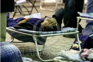 MÉXICO, D.F., 18FEBRERO2009.- La noche de ayer se intoxicaron más de una veintena de peregrinos provenientes de la Arquidiócesis de Toluca por comer pollo en puestos aledaños a la Basílica de Guadalupe. Paramédicos del ERUM, Cruz Roja y Protección Civil acudieron al atrio de la basílica para dar los primeros auxilios a las personas contagiadas. Los casos más crónicos fueron trasladados al hospital de la Villa. FOTO: SAÚL LÓPEZ/CUARTOSCURO.COM