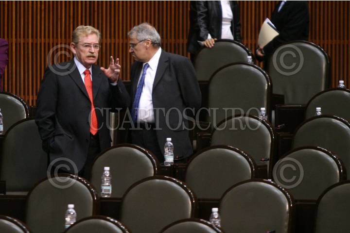 MÉXICO, D.F., 19FEBRERO2009.- El diputado Alejandro Chanona, coordinador de Convergencia conversa con Héctor Larios coordinador del PAN durante la sesión ordinaria en la Cámara de Diputados. FOTO: RODOLFO ANGULO/CUARTOSCURO