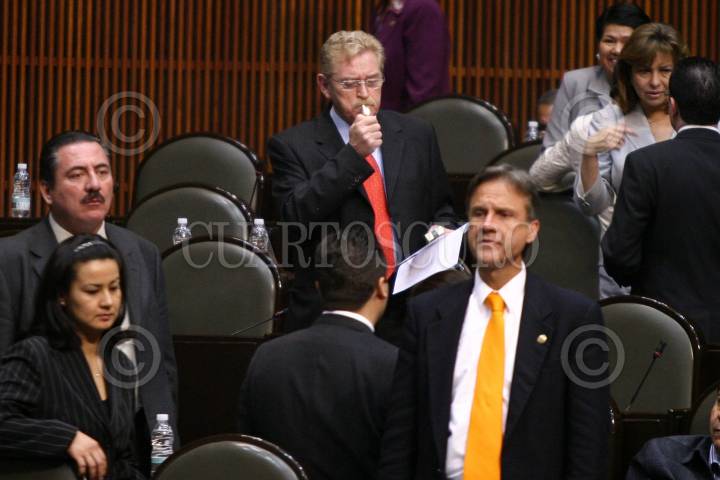 MÉXICO, D.F., 19FEBRERO2009.- El diputado Alejandro Chanona, coordinador de Convergencia conversa con Héctor Larios coordinador del PAN durante la sesión ordinaria en la Cámara de Diputados. FOTO: RODOLFO ANGULO/CUARTOSCURO