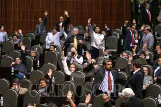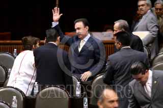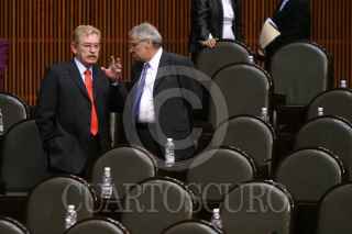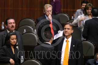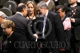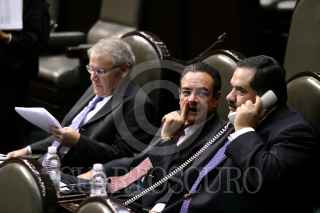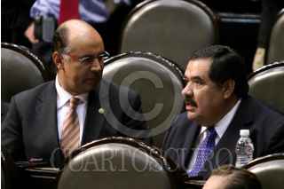 MÉXICO, D.F., 19FEBRERO2009.- El diputado Alejandro Chanona, coordinador de Convergencia conversa con Héctor Larios coordinador del PAN durante la sesión ordinaria en la Cámara de Diputados. FOTO: RODOLFO ANGULO/CUARTOSCURO