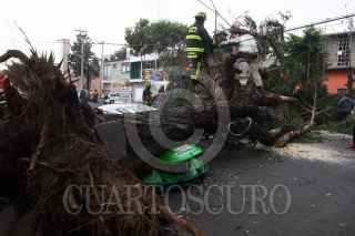 MÉXICO, D.F. 19FEBRERO2008.- Debido a las fuertes ráfagas de viento que azotó esta tarde la ciudad, un árbol cayo aplastando a un taxi ecológico, frente al numero 80 de la calle Juventino Rosas en la colonia Peralvillo, en la delegación cuahutemoc. FOTO: SAÚL LÓPEZ/CUARTOSCURO.COM