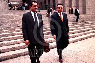 Carlos Cabal Peniche tiene cinco días para cubrir la fianza de 4 mil 600 millones de pesos, que le impuso el juez tercero en materia de amparo, Ricardo Guzmán, para que pueda seguir contando con la suspensión provisional que le permite no ser detenido. En la Imagen Carlos Cabal sale del Palacio de Justicia acompañado de su abogado. FOTO: Juan Pablo Zamora/CUARTOSCURO.COM