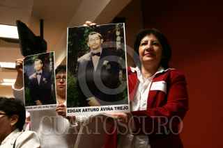 MÉXICO, D.F., 20FEBRERO2009.- La señora Alexia Trejo, muestra la foto de su hijo Edgar Arturo Aviña Trejo, quien supuestamente desapareció en Cancún el pasado 2 de noviembre de 2008, el joven se desempeñaba cono subadministrador de la aduana del área de equipaje del aeropuerto de Cancún. Esta asistió a las instalaciones de la Comisión Nacional de Derechos Humanos para presentar una queja en la que señala que la Procuraduría General de la República no ha investigado el caso de forma correcta. FOTO: MOISÉS PABLO/CUARTOSCURO.COM