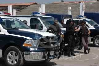 TULTITLAN, EDO. DE MEX., 20FEBRERO2009.- Elementos de Seguridad Pública y Tránsito Municipal de Tultitlán durante la inauguración del centro de monitoreo para el buen desempeño de ambas corporaciones. FOTO: MARIO NULO/CUARTOSCURO.COM