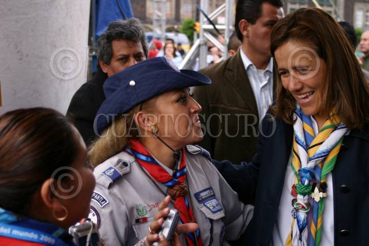 MÉXICO, D.F., 22FEBRERO2009.- Cientos de Scouts de distintas partes del país realizaron en la plancha del Zócalo capitalino la Flor de Lis mas grande del mundo hecha con miles de latas de aluminio. FOTO: RODOLFO ANGULO/CUARTOSCURO.COM