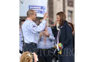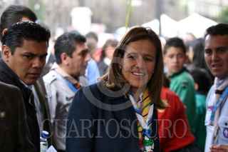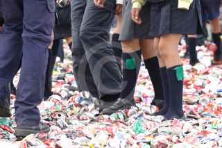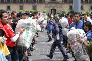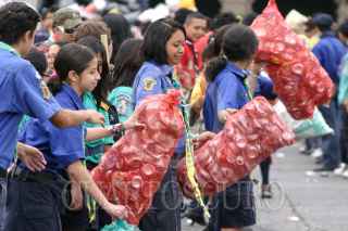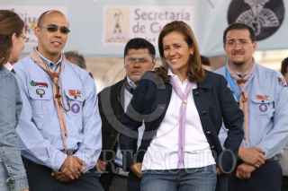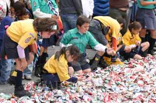 MÉXICO, D.F., 22FEBRERO2009.- Cientos de Scouts de distintas partes del país realizaron en la plancha del Zócalo capitalino la Flor de Lis mas grande del mundo hecha con miles de latas de aluminio. FOTO: RODOLFO ANGULO/CUARTOSCURO.COM