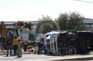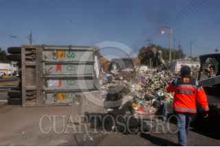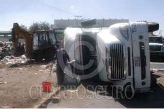 MÉXICO, D.F., 23FEBRERO2009.- Un trailer volcó tirando mas de 15 toneladas de basura sobre la avenida 602 al cruce con la avenida 613 en la colonia Peñon de los Baños de delegacion Venustiano Carranza. FOTO: LUIS CARBAYO/CUARTOSCURO.COM
