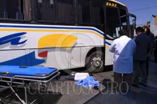 PUEBLA, PUEBLA, 23FEBRERO2009.- Miguel Montiel de 26 años de edad, boletero de la línea de autobuses Vía, perdió la vida al ser atropellado por una de las unidades de transporte para la cual trabajaba el chofer de la unidad 3632, aseguró que no vio al occiso cuando este ofrecia boletos en las afueras de la Central de Autobuses Puebla (CAPU). FOTO: JAVIER PALACIOS/CUARTOSCURO.COM