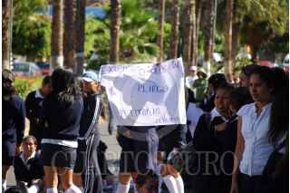 CHILPANCINGO, GUERRERO 23FEBRERO2009.- Estudiantes de la Escuela Normal del Estado "Ignacio Manuel Altamirano" reaizaron un bloqueo afuera del Ex Ineban, para exigir al titular de la SEG Jose Luis Gonzalez de la Vega Otero cumplimiento a su pliego petitorio de demandas. FOTO: OSCAR ALVARADO/CUARTOSCURO.COM