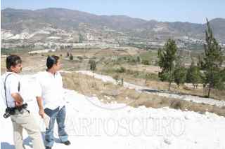 CHILPANCINGO, GUERRERO 23FEBRERO2009.- El regidor del PVEM Ivan Sanchez Aguilar y el procurador de Proteccion Ecologica del Estado de Guerrero (PROPEG) Tulio Estrada Apatiga realizaron un recorrido de supervisión por el fraccionamiento "Diamante Sur" ubicado al sur de la capital del estado sobre el bulevar Chilpancingo-Petaquillas, luego de recibir denuncias sobre el derribamiento de pinos en dicho lugar asi como de diversas irregularidades cometidas por los propietarios al llevar a cabo los trabajos de lotificación en este sitio, donde han causado daños al medio ambiente. FOTO: OSCAR ALVARADO/CUARTOSCURO.COM