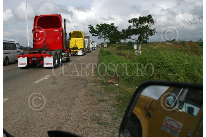 QUERETARO, QUERETARO, 24FEBRERO2009.- Transportistas del estado realizaron protestas contra del aumento al diesel y el Impuesto Empresarial a la Tasa Única (IETU). La movilización provocó severos congestionamiento viales. FOTO: MARIO NULO/CUARTOSCURO.COM