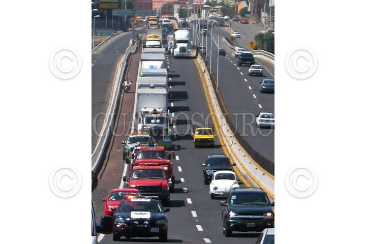 QUERETARO, QUERETARO, 24FEBRERO2009.- Transportistas del estado realizaron protestas contra del aumento al diesel y el Impuesto Empresarial a la Tasa Única (IETU). La movilización provocó severos congestionamiento viales. FOTO: MARIO NULO/CUARTOSCURO.COM