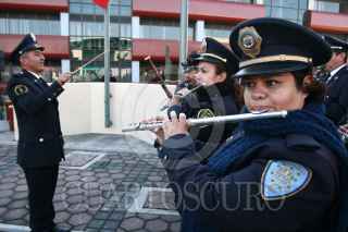 MÉXICO, D.F., 24FEBRERO2009.- Una mujer policía perteneciente a la banda de guerra de la Secretaría de Seguridad Pública del DF, durante la ceremonia de abanderamiento en la preparatoria del Distrito Federal "Ricardo Flores Magón". FOTO: MOISÉS PABLO/CUARTOSCURO.COM