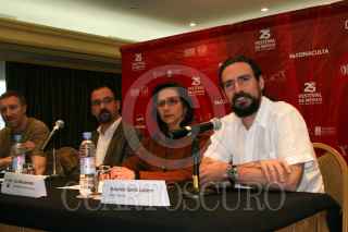 MÉXICO, D.F., 25FEBRERO2009.- Philip Pickett, José Wolffer, Nina Serratos y Mauricio García Lozano, en la conferencia de prensa de la opera Don Giovanni. FOTO VICTORIA VALTIERRA/CUARTOSCURO.COM