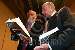 MÉXICO, D.F., 25FEBRERO2009.- Diego Fernandez de Ceballos y Carlos Arriola, autor del libro "El miedo a gobernar. La verdadera Historia del PAN", durante la presentación de éste en el Museo Franz Mayer. FOTO: ISAAC ESQUIVEL/CUARTOSCURO.COM