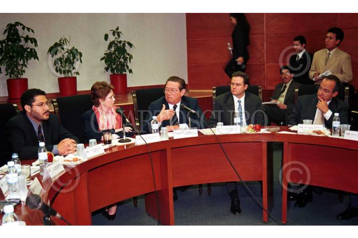 Martí Batres, María Teresa Goméz Mont, Rafael Rodríguez, Bernardo de La Garza y Felipe Calderón, del PRD, PAN, PRI, PVEM y PAN respectivamente, durante la reunión de la Comisión Especial para la Reforma del Estado en la Cámara de Diputados. FOTO: Oswaldo Ramírez/CUARTOSCURO.COM