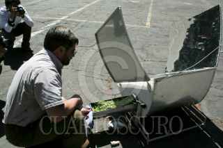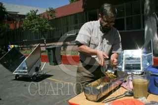 MÉXICO, D.F., 26FEBRERO2009.- El Profesor, Eduardo Rincón Mejía de la Universidad Autónoma de la Ciudad de México preparó tres platillos de comida en estufas solares con el fin de mostrar los nuevos proyectos de energía solar dentro del programa de universidades. FOTO: ENRIQUE ORDÓÑEZ/CUARTOSCURO.COM