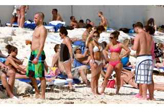 CANCÚN, QUINTANA ROO, 26FEBRERO2009.- Estudiantes canadienses los llamados "springbreakers" disfrutan de las playas en la Riviera Maya. El próximo mes se espera la llegada de más turistas pero de origen estadunidense. FOTO: AMARANTA PRIETO/CUARTOSCURO.COM