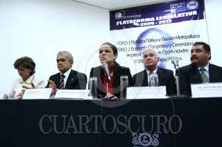 MÉXICO, D.F., 26FEBRERO2009.- Carmen Segura Rangel, presidenta de la comisión de seguridad pública en la ALDF, Miguel Angel Mancera Espinosa, Procurador General de Justicia del DF, Mariana Gómez del Campo, dirigente local panista, Demetrio Sodi de la Tijera, presidente del consejo del Centro de Estudios para la Zona Metropolitana y José Felipe Romero Pérez, miembro de asuntos internos SSP DF, durante la clausura de los foros de discusión y análisis para la “Plataforma Legislativa del Distrito Federal”, en Casa Lamm. FOTO: MOISÉS PABLO/CUARTOSCURO.COM