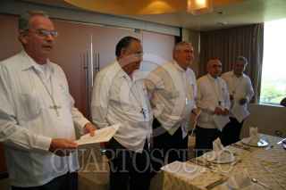 VILLAHERMOSA, TABASCO, 27FEBRERO2009.- En el salón Ejecutivo del hotel Hilton, se celebró una rueda de prensa eclesiástica de Obispos de la región Sureste, para enviar un mensaje por el día nacional de la Familia a celebrarse este primer domingo de Marzo. En la imágen de izquierda a derecha: Monseñor y Obispo Pedro Pablo Elizondo Cárdenas, Monseñor y Obispo Benjamín Castillo Plascencia, Monseñor y Arzobispo Emilio Carlos Berlie Belaunzarán, Monseñor y Obispo José Rafael Palma Capetillo y Monseñor y Obispo Ramón Castro Castro. FOTO: MARCO POLO GUZMÁN/CUARTOSCURO.COM