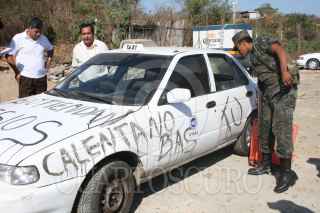 ZIHUATANEJO, GUERRERO, 28FEBRERO2009.- Luego de haber sido "levantado" por desconocidos en este municipio, la madrugada de este sábado fue encontrado el cuerpo sin vida el sindico, Rolando Landa Hernández, el cual se encontraba dentro de un taxi y con señales de tortura. FOTO: FELIPE SALINAS/CUARTOSCURO.COM