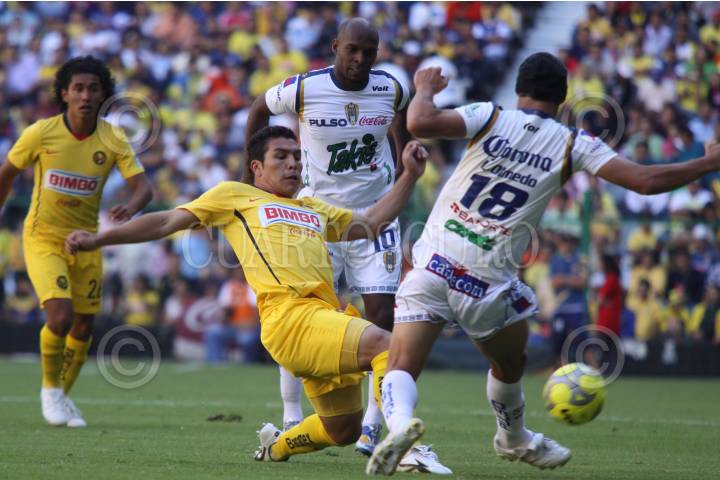 MÉXICO, D.F., 01MARZO2009.- Salvador Cabañas disputa el balon ante jugadores del San Luis en el partido que cerró la fecha ocho del Torneo Clausura 2009 del futbol mexicano. FOTO: SÁSHENKA GUTIERREZ/CUARTOSCURO.COM