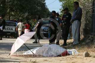 PETATLÁN, GUERRERO, 02MARZO2009.- Hoy por la mañana, fue encontrado ejecutado en la comunidad de Palos Blancos, el policía preventivo de Zihuatanejo, José Ángel Jaimes Tapia, de 37 años de edad, cuando uniformado salia de su domicilio hacia el puerto para iniciar su servício. Fué acribillado con rifles AK-47 y AR-15. FOTO: FELIPE SALINAS/CUARTOSCURO.COM