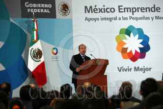 MÉXICO, D.F., 02MARZO2009.- Felipe Calderón, Presidente de México durante el evento -México Emprende Apoyo Integral a Pequeñas y Medianas Empresas- que se llevo acabo en el salón Adolfo Lopez Mateos de la Residencia Oficial de los Pinos. FOTO: ARIEL GUTIERREZ/CUARTOSCURO.COM
