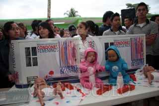 VILLAHERMOSA, TABASCO, 02MARZO2009.- Por primera vez y a nivel nacional, el ayuntamiento de Centro presenta un programa preventivo sobre la educación sexual, prevención y planificación familiar al poner en marcha “Jóvenes de Centro por una Juventud Responsable y Sana”. Este programa intenta hacer conciencia sobre embarazos tras una relación sexual, por lo que dispusieron en el CETIS 70 el primer taller en donde las alumnas probarán los cuidados maternos con un bebé virtual que llora, se enferma, realiza sus necesidades biológicas y monitorean si hay agresiones físicas. FOTO: MARCO POLO GUZMÁN HERNÁNDEZ/CUARTOSCURO.COM