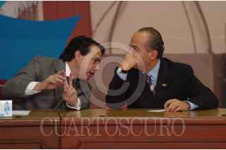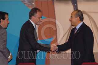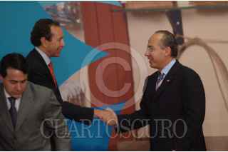 MÉXICO D.F., 02MARZO2009.- Felipe Calderón Hinojosa, Presidente de México, es acompañado de Enrique Castillo Sánchez Presidente de la Asociación de Bancos de México y de Gerardo Ruiz, Secretario de Economía, encabezo la ceremonia donde realizó la presentación, del programa México Emprende, esto en la residencia Oficial de los Pinos. FOTO: IVÁN MÉNDEZ/CUARTOSCURO.COM