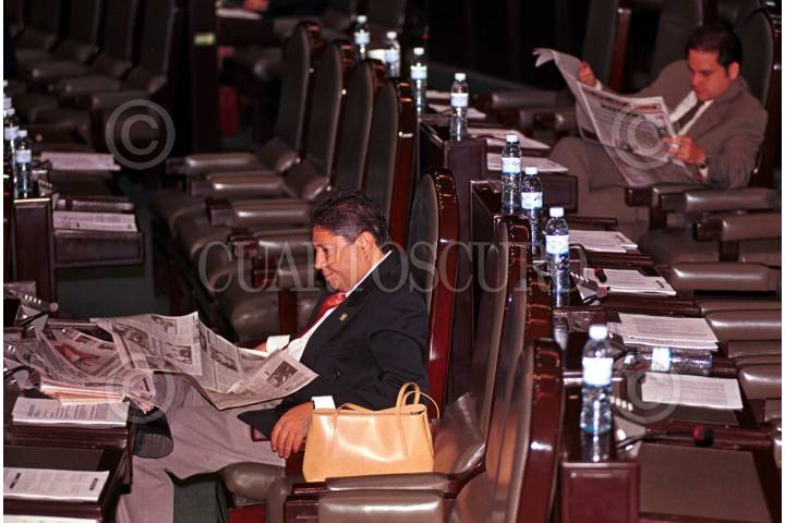 Diputados panistas se mantienen informados, durante la sesión ordinaria en la Cámara Baja. FOTO: Oswaldo Ramírez/CUARTOSCURO.COM