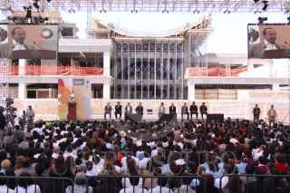 TULTITLAN, EDO. MÉXICO 03MARZO2009.- Felipe Calderon presidente de México encabezo la ceremonia en donde se presentaron las acciones del ISSTE para cumplir con el acuerdo Nacional en favor de la economia familiar y el empleo FOTO: SÁSHENKA GUTIÉRREZ/CUARTOSCURO.COM