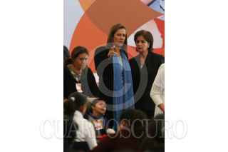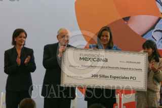 MÉXICO D.F., 03MARZO2009.- Margarita Zavala, esposa del Presidente, Felipe Calderón Hinojosa, acompañada de Cecilia Landerreche Gómez Morin, titular del DIF, entrego simbolicamente 400 sillas de ruedas especiales tipo PCI (Parálisis Cerebral Infantil) esto en el centro de rehabilitación, Gaby Brimer. FOTO: GUILLERMO PEREA/CUARTOSCURO.COM