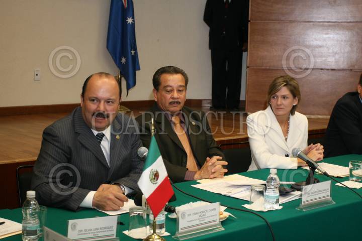 MÉXICO D.F., 03MARZO2009.- El diputado del PAN, Héctor Larios, acude a dialogar con el diputado César Duarte Jáquez, durante la sesión ordinaria en la Cámara de Diputados, donde se aprobaron reformas a la ley Federal de Radio y Televisión. FOTO: GUILLERMO PEREA/CUARTOSCURO.COM