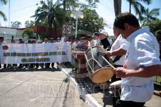 VILLAHERMOSA, TABASCO, 04MARZO2009.- Miembros del Sindicato Nacional de Trabajadores de la Música de la República Mexicana y Tabasco, realizaron una caminata desde la quinta Grijalva hasta Palacio de Gobierno en la cual muestran su total apoyo al gobernador tabasqueño por realizar acciones que contrarresten a la delincuencia organizada. FOTO: MARCO POLO GUZMÁN HERNÁNDEZ/CUARTOSCURO.COM