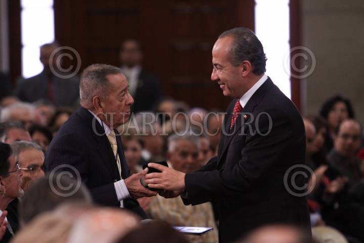 MÉXICO, D.F., 04MARZO2009.- La fotógrafa Graciela Iturbide, recibió el Premio Nacional de Ciencias y Artes 2008 en la categoría de Bellas Artes, se lo entregó Felipe Calderón Hinojosa, Presidente de México, en la residencia oficial de los Pinos. FOTO: MOISÉS PABLO/CUARTOSCURO.COM