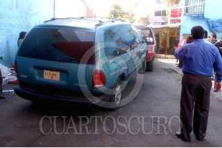 MÉXICO, D.F., 04MARZO2009.- Camioneta tipo Dodge Caravan de color azul placas 552-VKL, fue encontrada en la calle de Prolongación Nopal casi esquina con la calle de Naranjo en la colonia Atlampa, perímetro de la Delegación Cuauhtémoc. En la que huyeron las personas responsables de haber baleado a los Topografos y Albañiles que laboraban en las obras que se realizan en el Monumento a La Raza con motivo del Bicentenario. FOTO: LUIS CARBAYO/CUARTOSCURO.COM