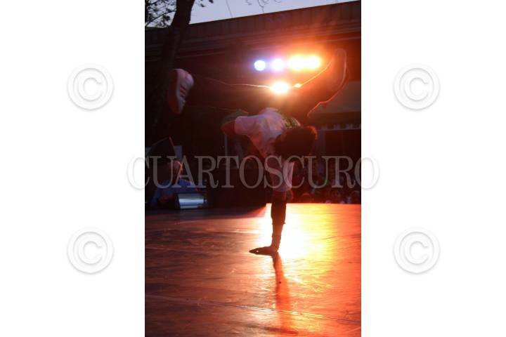 OAXACA, OAXACA, 04MARZO2009.- La onceava muestra de "Danza Contemporánea", que como ya es tradición se celebra en el zócalo de esta capital, y convoca a bailarines de distintos puntos de la país, este año una de las novedades es la disciplinas del "Break Dance", también están presentes muestras artísticas melodramáticas, coreografías o performances. FOTO: MAX NÚÑEZ/CUARTOSCURO.COM