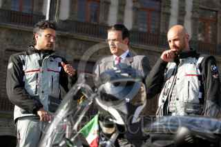 MÉXICO D.F., 05MARZO2009.- El Actor Jaime Camil, Marcelo Ebrard Casaubon jefe de gobierno del Distrito Federal y el actor Javier Poza, durante el banderazo de salida al nuevo programa de Televisa "Aventura por México", en el cual recorrerán toda la república mexicana con rumbo a el bicentenario de la independencia de México FOTO: RICARDO CASTELAN/CUARTOSCURO.COM
