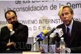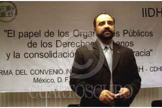 Emilio Alvarez Icaza, presidente de la Comisión de Derechos Humanos del D.F. encabezó la reunión "El Papel de los Organismos Públicos de los Derechos Humanos y la Consolidación de la Democracia". FOTO: Victoria Valtierra/CUARTOSCURO.COM