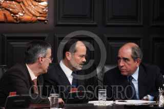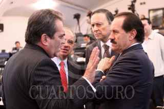 MÉXICO D.F., 05MARZO2009.- Los senadores José González Morfín, Gustavo Madero y Pablo Gómez, durante la sesión en la Cámara de Senadores. FOTO: MOISÉS PABLO/CUARTOSCURO.COM