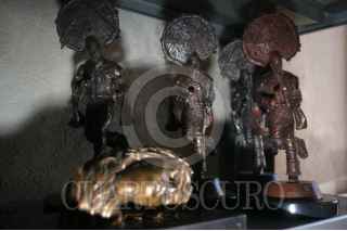 OAXACA, OAXACA 05MARZO2009.- Figura de Bronce de la Cabeza de Donaji, princesa zapoteca asesinada según la leyenda y Danzantes de la Pluma, baile típico de Zaachila Oaxaca. FOTO: MAX NÚÑEZ/CUARTOSCURO.COM