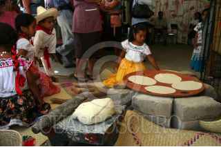 OAXACA, OAXACA, 05MARZO2009.- El Tejate se elabora con el maíz y la ceniza se ponen a remojar en agua desde la víspera para que se le afloje el hollejo. A esto bien molido, le llaman nicuanextle. El cacao se tuesta junto con la rosita de café, el coroso y el pistle y se muele todo muy bien. Se mezcla con el nicuanextle. En un apaxtle o cazuela grande de barro con las manos y brazos limpios se empieza a batir y se le va agregando poco a poco agua fría para que vaya sacando espuma, se debe dejar lo más espumoso posible, se hace a un lado la espuma y se le añade azúcar al gusto, mezclando bien. FOTO: MAX NÚÑEZ/CUARTOSCURO.COM