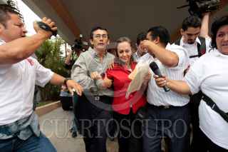 CANCÚN, QUINTANA ROO, 06MARZO2009.- Patricia Seoane de Bretón, directora del albergue infantil La Casita de Cancún, ofreció una rueda de prensa en un hotel de la zona centro de esta ciudad, que terminó en un encontronazo verbal con algunas de las madres de familia, quienes la acusan de haberles robado a sus hijos e hijas, bajo engaños. Para eludirlas la activista se resguardó en el sanitario y terminó por salir huyendo con ayuda de su equipo. FOTO: AMARANTA PRIETO/CUARTOSCURO.COM