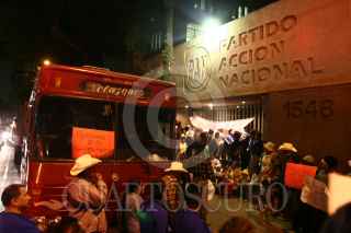 MÉXICO D.F., 06MARZO2009.- Simpatizantes de PAN de los municipios mexiquenses del San José del Rincón, Villa del Carbón y Ciudad Nezahualcoyotl, bloquearon el eje 8 y la avenida Coyoacan debido a que la dirigencia de su partido no los atendió cuando se manifestaban a las afueras de la cede nacional de Acción Nacional. Los inconformes mencionaron estar en desacuerdo con por la imposición de candidatos municipales del PAN en su localidad. FOTO: SAÚL LÓPEZ/CUARTOSCURO.COM