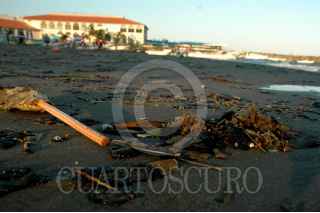 VERACRUZ, VERACRUZ. 06MARZO2009.- Debido al cambio en la corriente marítima provocado por el calentamiento o efecto de "Surada" se registro la presencia de desechos de "Chapopote" en la popular playa de Villa del Mar y a decir del director de protección civil municipal, Isidro Cano luna son desechos de barcos fondeados fuera del puerto. FOTO: JOSÉ CANDELARIO/CUARTOSCURO.COM