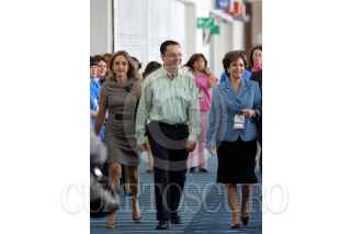MÉXICO D.F., 07MARZO2009.- Mujeres provenientes de diferentes estados del país participaron en el "Encuentro Nacional de Mujeres del PAN", en el Centro de Exposiciones Banamex. FOTO: MOISÉS PABLO/CUARTOSCURO.COM
